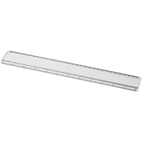 Liniaal met papieren inlay en met zowel markeringen in inches als centimeters. GPPS Plastic.