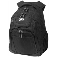 Laptop rugzak met hoofdvak met ritssluiting en gevoerd vak voor iPad of tablet. Het grote voorvak met ritssluiting is voorzien van een oortelefoon doorgang, het voorvak heeft een organizer met indeling voor pennen, visitekaartjes, oplaadkabels, powerbanks
