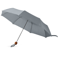 Automatische paraplu met houten handvat en metalen baleinen. Polyester.