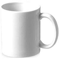 Mok van keramiek. Vaatwasmachinebestendig volgens EN12875-1 (minimaal 125 wasbeurten) voor alle decoratiemethoden. Geleverd in een witte geschenkverpakking. Inhoud 350 ml. Keramiek.