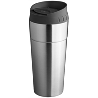 Geïsoleerde beker met deksel en schuifvergrendeling. Inhoud 450 ml. Roestvrijstaal, AC Plastic.