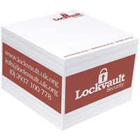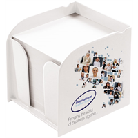Wit groot memoblok. Bevat 550 bladen (80g/m2) blanco papier en blanco zijden. Digitale druk of tampondruk mogelijk op alle vier zijden van het memoblok. Decoratie ook mogelijk op elk blad. Afmetingen blad: 55x55mm. Papier, 80 g/m2.