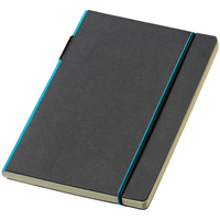 Zwart hardcover A5 formaat notitieboek dat met de gekleurde rug en elastieksluiting net even anders is dan andere. Op de rug een handige elastieklus voor een pen. 80 pagina’s van 80 gram gelinieerd papier. Geleverd in een Journalbooks geschenketui. Karton