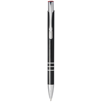 Balpen met klikmechanisme in verschillende kleuren aan de bovenkant van de pen. Bij het lasergraveren wordt de kleur eronder onthuld, zodat deze overeenkomt met de kleur aan de bovenkant van de pen. De pen heeft een metalen clip, een aluminium huls en een
