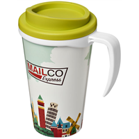 Geïsoleerde beker met draaideksel en geintegreerde handvat. De beker heeft een full colour all-over bedrukking welke tijdens het spuitgiet proces één wordt met de mok, waardoor deze slijtvast en duurzaam is. Compatibel met EN12875-1, vaatwasmachinebestend