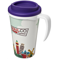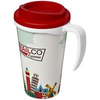Geïsoleerde beker met draaideksel en geintegreerde handvat. De beker heeft een full colour all-over bedrukking welke tijdens het spuitgiet proces één wordt met de mok, waardoor deze slijtvast en duurzaam is. Compatibel met EN12875-1, vaatwasmachinebestend