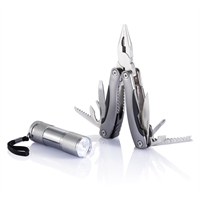 14 functies roestvrijstalen multitool met geanodiseerd aluminium handvat, verpakt in etui.