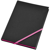 Formaat notitieboek met 80 pagina’s van 70 gram gelinieerd papier met diagonale elastieksluiting en rand in spetterende neonkleuren. Karton.