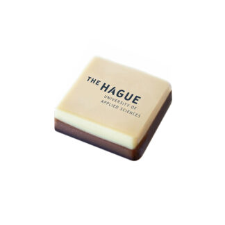 The chocolate squares are made of the finest chocolate (Cocoa Horizons-Certified from the Belgian top brand Barry Callebaut), white and milk couverture | In full color we can print any design, image or logo | The chocolates are packed per 48 pieces in a golden tray, not wrapped individually | Order quantity  > 10,000 pieces, price on request | Available in multiples of 48 pieces | Fast delivery | Setup costs for free!