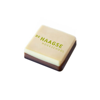 The chocolate squares are made of the finest chocolate (Cocoa Horizons-Certified from the Belgian top brand Barry Callebaut), white and milk couverture | In full color we can print any design, image or logo | The chocolates are packed per 48 pieces in a golden tray, not wrapped individually | Order quantity > 10,000 pieces, price on request | Available in multiples of 48 pieces | Fast delivery | Setup costs for free!
