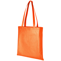 Woven draagtas met open hoofdvak met extra kartonnen bodem. Draag hoogte 25.4 cm. PP plastic non woven, 80 g/m2.