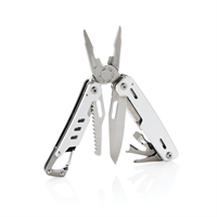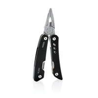 Compact en duurzaam multitool met 7 functies. Met aluminium behuizing en roestvrij stalen gereedschap. Inclusief: naaldbektang, gewone tang, kniptang, mes, zaag & flesopener, kruiskopschroevendraaier en karabijnhaak. Verpakt in geschenkverpakking.