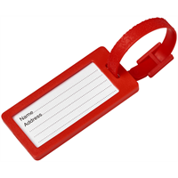 Stevig bagagelabel compleet met papieren inlay, een doorzichtige beschermhoes en een bijpassend kunststof bandje. ABS Plastic.